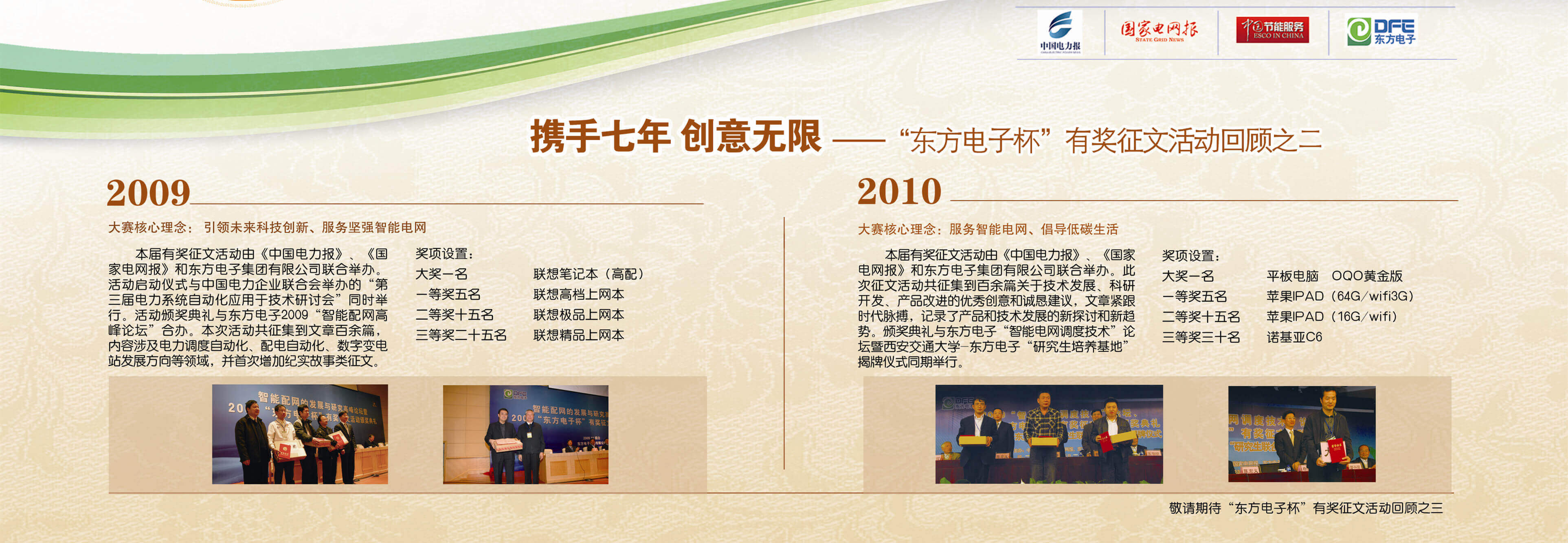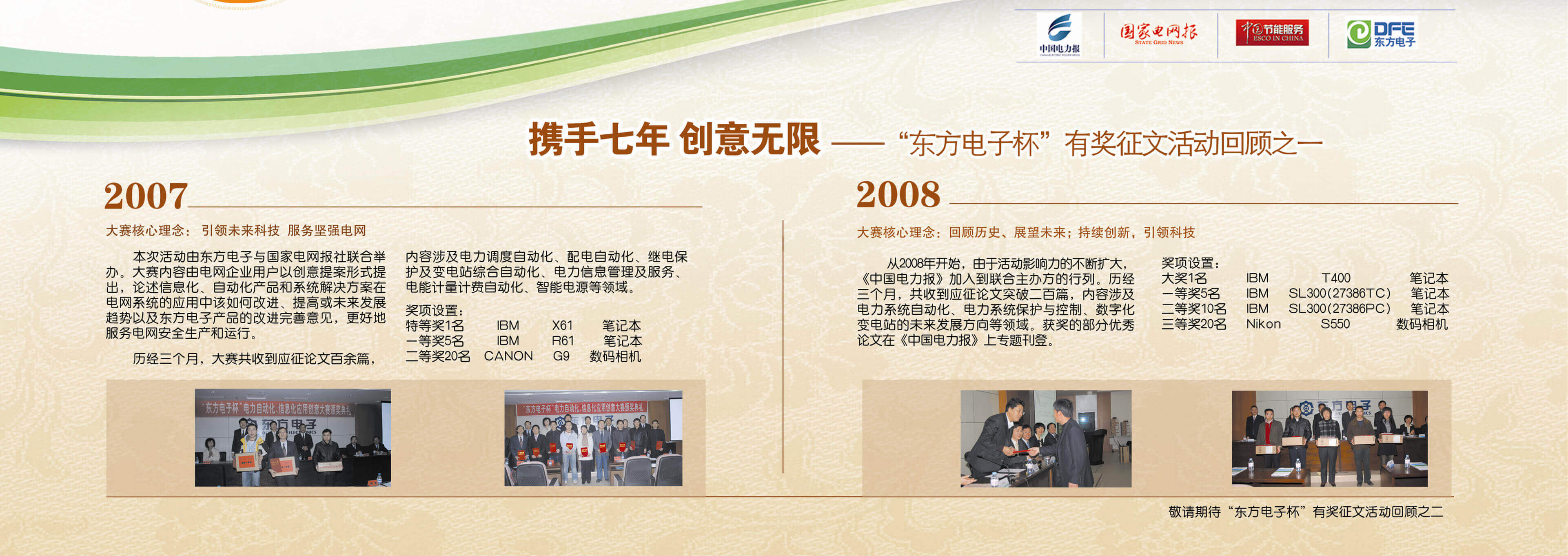 2007年至今,由北京中科唯佳科技有限公司联合《中国电力报》、《国家电网报》、《中国节能服务》杂志共同举办的“北京中科唯佳科技有限公司杯”有奖征文活动已成功举办七届,在这个过程中,我们收获了很多客户智慧的结晶、收获了客户参与的热情,成功搭建了与客户交流的平台和沟通的纽带。